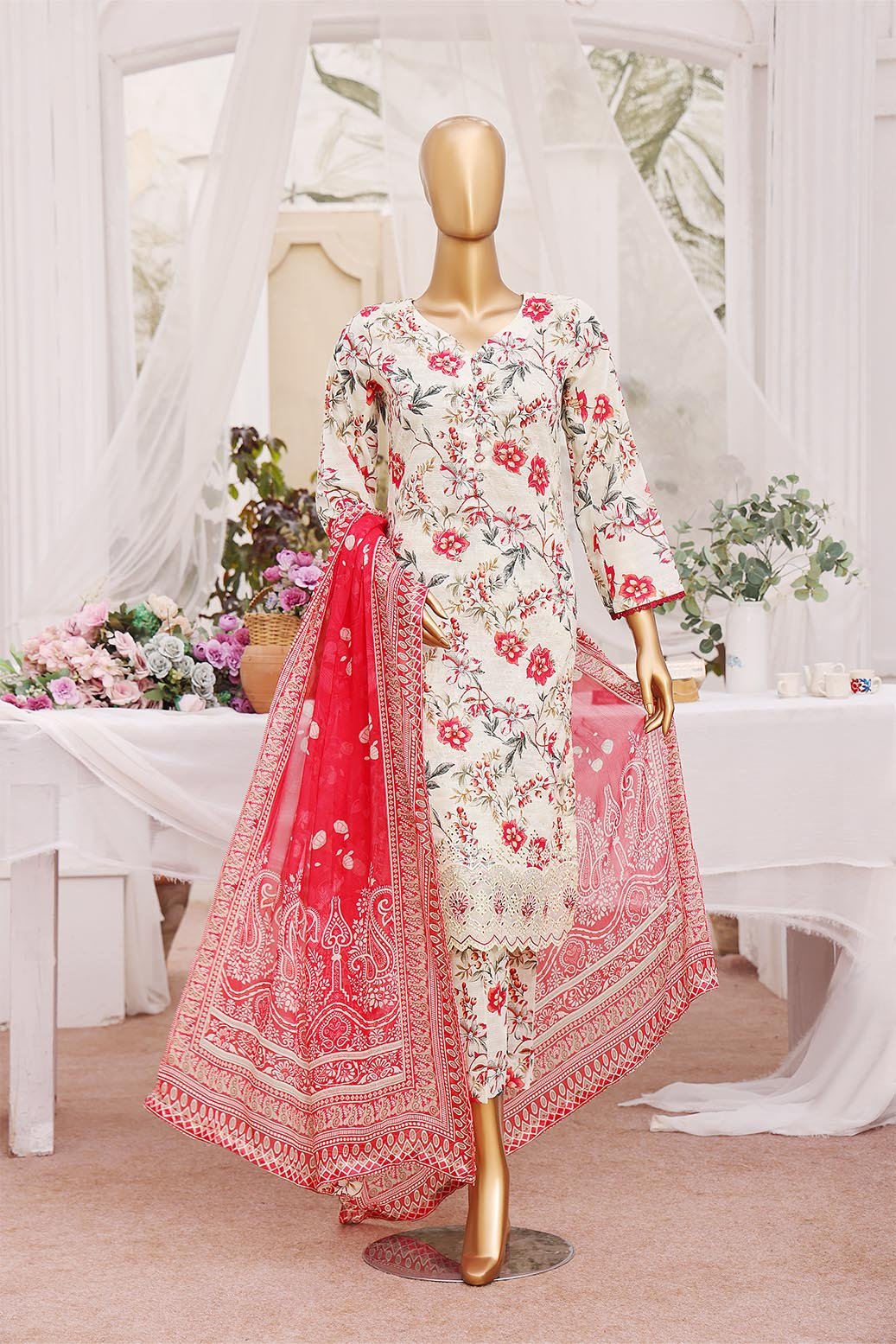 Vanilla Unstitched Dyed Embroidered Doriya Lawn With Exclusive Embroidered Bamber Chiffon Duppata