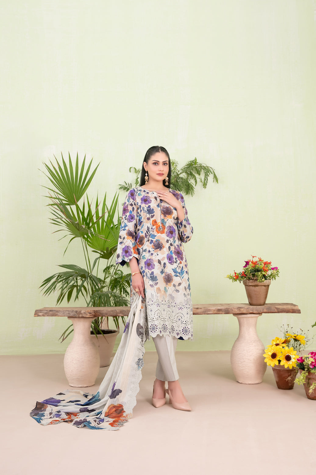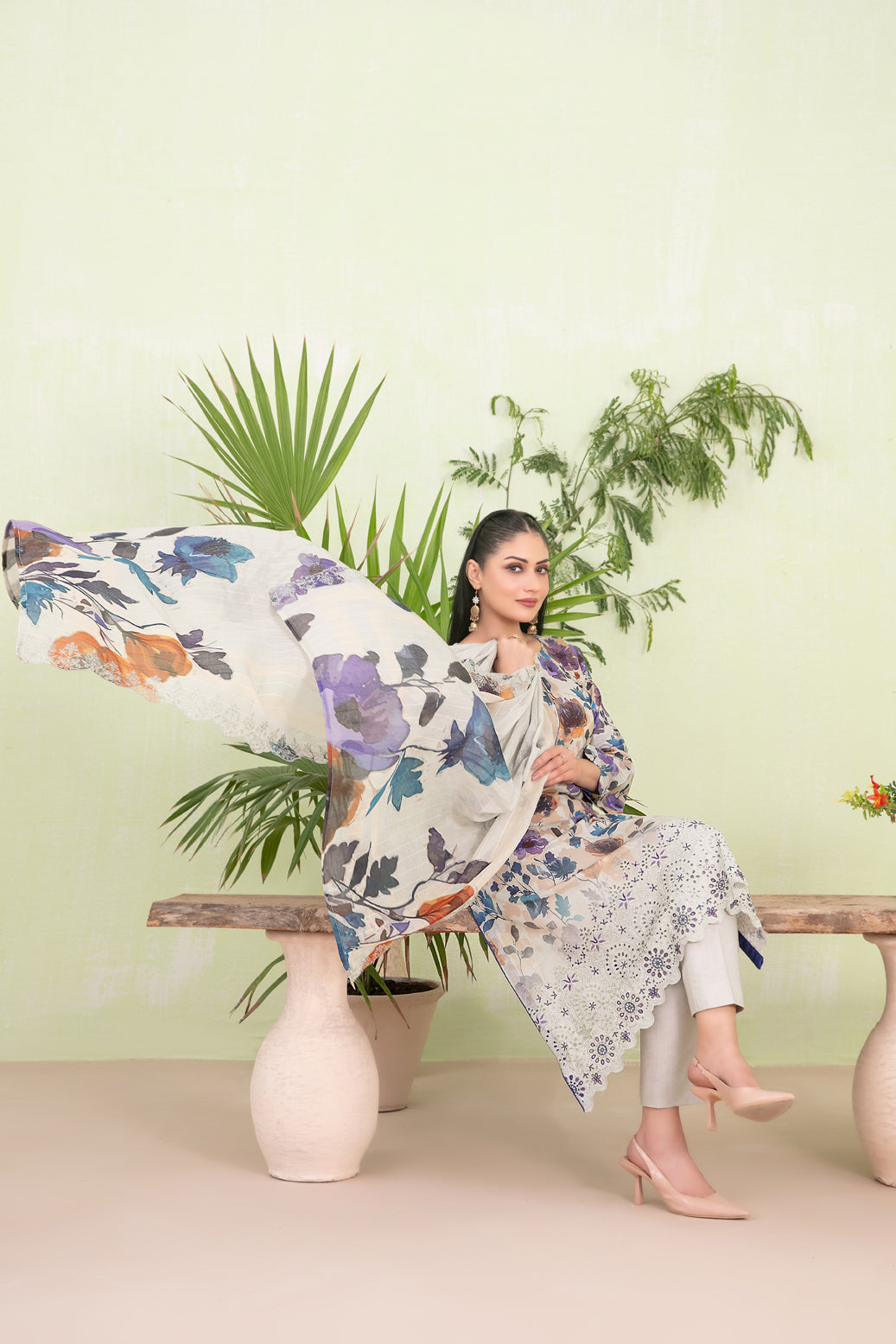 3 Piece Un-Stitched Collection By Tawakkal Fabrics, Attractive & Elegant Lawn Embroidered and Printed Collection comes with: