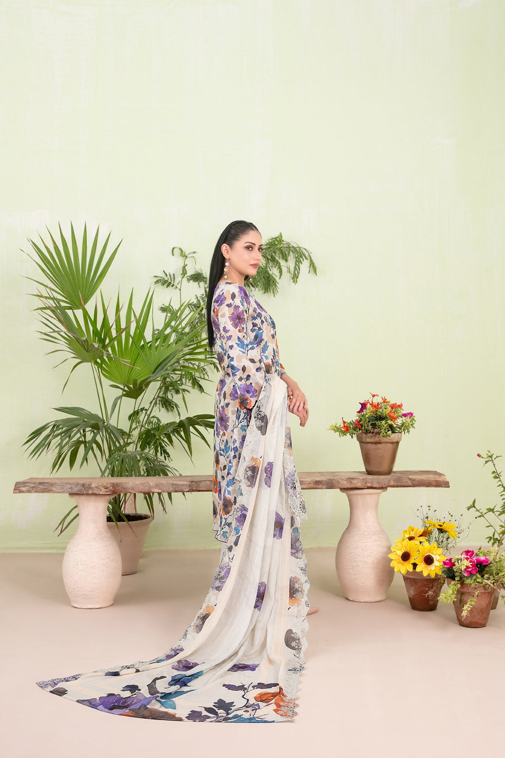 - Un-Stitched Embroidered Digital Printed Slub Lawn Shirt Designs with Embellishments