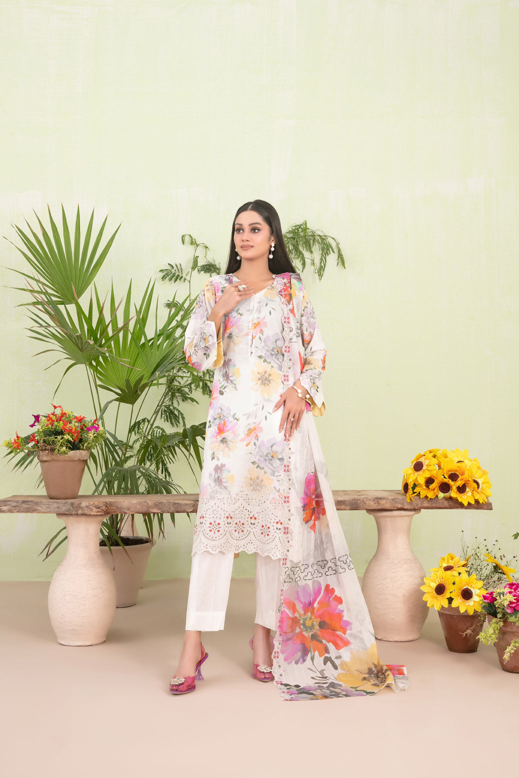 3 Piece Un-Stitched Collection By Tawakkal Fabrics, Attractive & Elegant Lawn Embroidered and Printed Collection comes with: