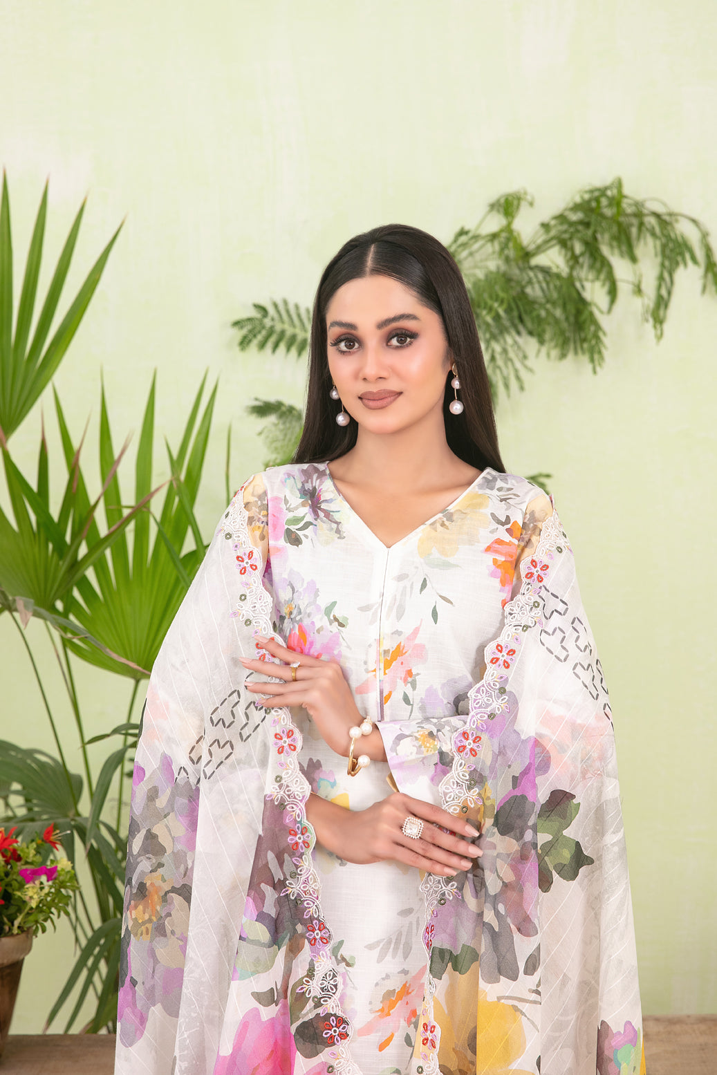 Vanilla Unstitched Dyed Embroidered Doriya Lawn With Exclusive Embroidered Bamber Chiffon Duppata