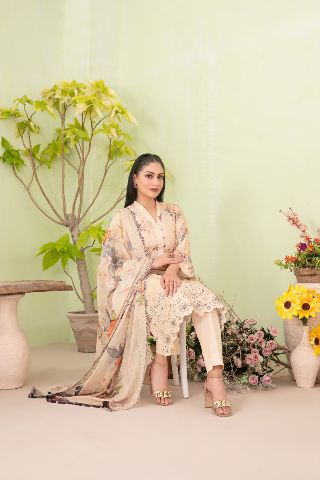 3 Piece Un-Stitched Collection By Tawakkal Fabrics, Attractive & Elegant Lawn Embroidered and Printed Collection comes with: